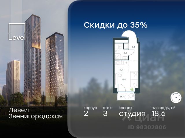 Продается студия площадью 30.3 кв.м. на 6-м этаже в ЖК "Клубный квартал Крылатская 33". Прямая продажа от застройщика! Крылатская 33 - проект премиум-класса на западе Москвы от специализированного застройщика "Сияние". Комплекс расположен всего в 15 минутах от Садового кольца и Москва-Сити, а рядом есть большое количество зелёных зон: Крылатский и Москворецкий парки, Серебряный бор, Крылатские холмы - это создает идеальный баланс между приватностью и динамичным ритмом мегаполиса. Квартал сочетает высотные башни до 150 метров и камерные малоэтажные корпуса. Витражное остекление "в пол" наполняет квартиры светом и открывает захватывающие панорамы на Москву-реку и знаковые виды столицы. Здесь каждый найдет то, что подходит именно ему - от уютных студий до роскошных пентхаусов и квартир с собственными террасами. Внутренняя среда жилого комплекса продумана до мельчайших деталей, чтобы резиденты могли продуктивно работать и качественно отдыхать, не покидая территорию: • фитнес-центр, включающий в себя СПА-зону; • коворкинг с кофейней и быстрым интернетом; • общественная гостиная для организации клубных мероприятий; • ресторан с панорамным остеклением; • благоустроенный сад с зоной отдыха; • инновационная игровая площадка для детей всех возрастов; • консьерж-сервис 24/7, современные системы видеонаблюдения и пожаротушения; • двухуровневый паркинг и многое другое. Район Крылатское - точка притяжения для тех, кто выбирает активный образ жизни. В непосредственной близости расположены Гребной канал, Олимпийский велотрек, горнолыжный комплекс "Лата Трэк", гольф-клуб и парковые зоны. В проекте действуют привлекательные условия покупки: - выгода до 10% при 100% оплате (действует на ограниченный пул квартир, подробности уточняйте в отделе продаж). - рассрочка от застройщика 0% с первоначальным взносом от 20% на срок до 30.06.2027.