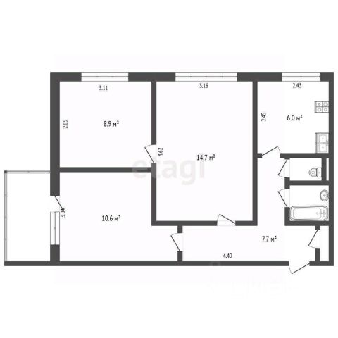 Площадь: две раздельные комнаты - 14,5 м и 17,8 м (с балконом и видом во двор).