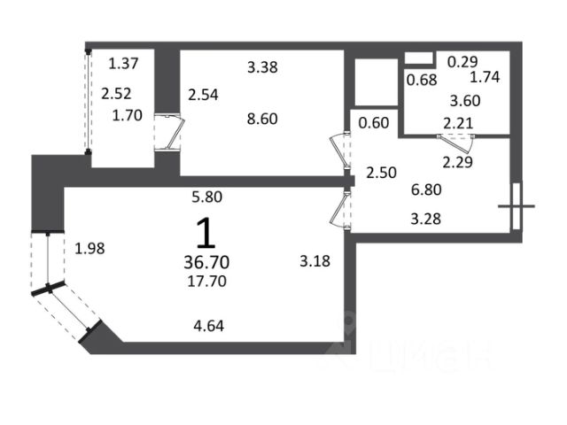 Отличительная черта — удобная планировка с изолированными комнатами. Мебель отсутствует.