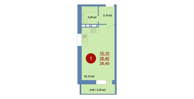 Продается 1-к квартира площадью 39.13 кв. м с черновой отделкой. Квартира расположена на 7 этаже 17 этажного дома, в 203 корпусе.