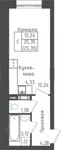 Продаётся студия в строящемся доме (Дом 1), срок сдачи: I-кв. 2026, общей площадью 25.35 кв.м., на 3 этаже. Квартал жилой застройки "Зеленый Оазис-Город"