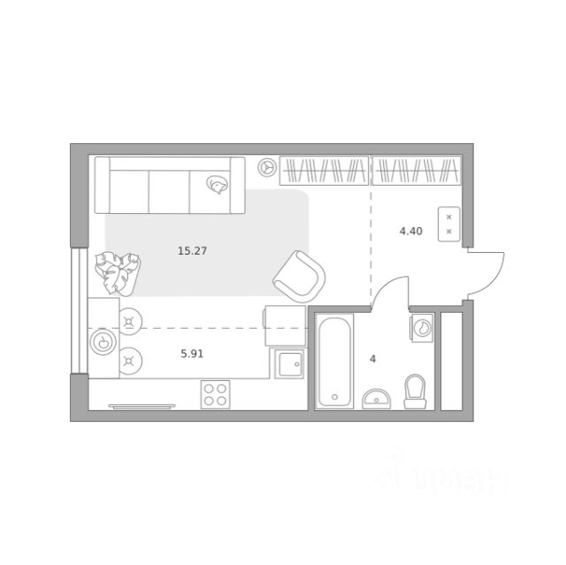 Продаётся студия 419, площадью 28,59 м², на 4 этаже в ЖК "Притяжение Сити" корпус 8. Стоимость — от 7274211 руб. Квартира без отделки, планировка односторонняя, окна во двор.