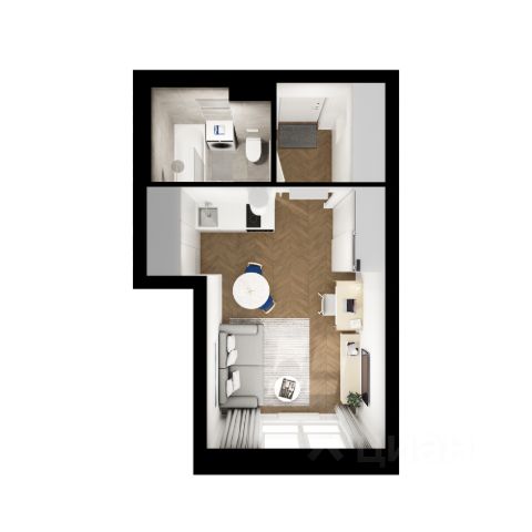 Продаётся студия 791, площадью 26,34 м², на 4 этаже в ЖК "Ильинойс" корпус 3. Стоимость — от 6800344 руб. Квартира без отделки, планировка односторонняя, окна во двор.