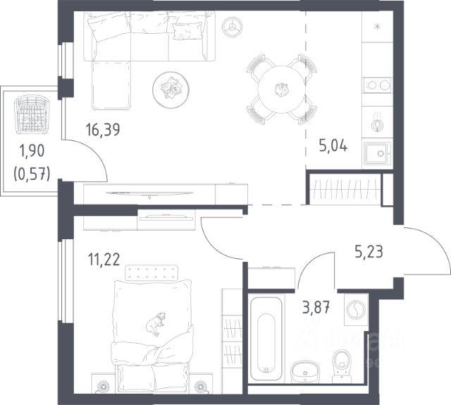 Продаётся 1-комнатная квартира в строящемся доме (Корпус 23), срок сдачи: II-кв. 2026, общей площадью 41.8 кв.м., на 4 этаже. Расположение, транспортная доступность