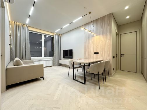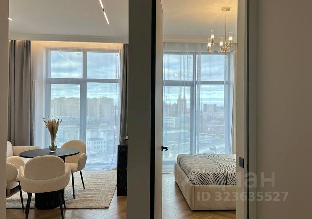 Планировка: кухня-гостиная, изолированная спальня, прихожая, ванная комната/санузел. В гостиной расположен уютный и очень стильный диван, который раскладывается в полноценное двуспальное место, телевизор 65', шкаф и стол для полноценной работы. В спальне шикарная двуспальная кровать с ортопедическим матрасом, стильные прикроватные тумбы, большой шкаф-купе с зеркалами и телевизор 55'. В прихожей оборудован вместительный шкаф-купе с продуманной системой хранения вещей. Кухня оборудована по последнему слову техники: стильный кухонный гарнитур, плита Elecrtolux с мощной вытяжкой, холодильник Samsung, духовой шкаф Electrolux, СВЧ-печь Panasonic и посудомоечная машина Electrolux. Рядом расположена обеденная зона с раскладывающимся столом. Санузел оборудован качественной сантехникой: огромной, шикарной ванной 120х180 для двух человек, зеркало с подсветкой и подогревом. Для обеспечения бесперебойной подачи горячей воды установлен водонагревательный бойлер. Интернет, wi-fi.