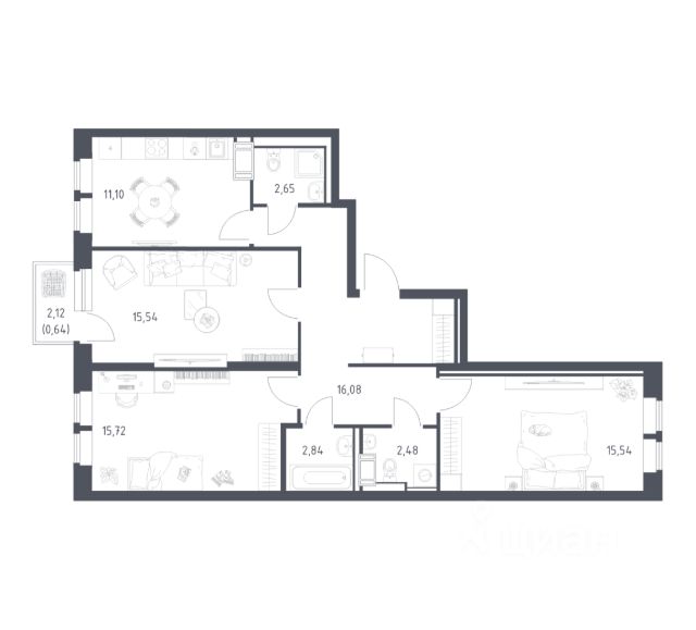 В продаже 3-комнатная квартира в корпусе 2.1 ЖК 'Пятницкие Луга'. Квартира располагается на 7 этаже, общая площадь 78.54 м2.