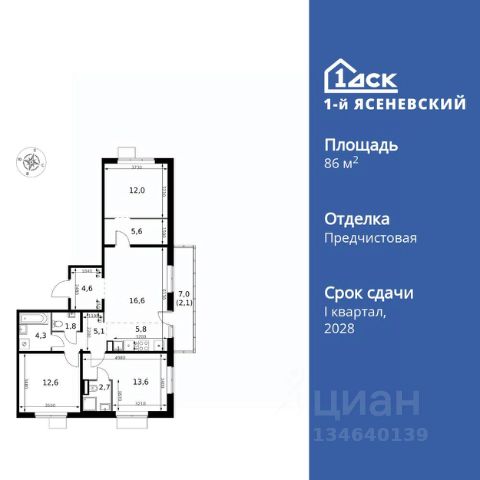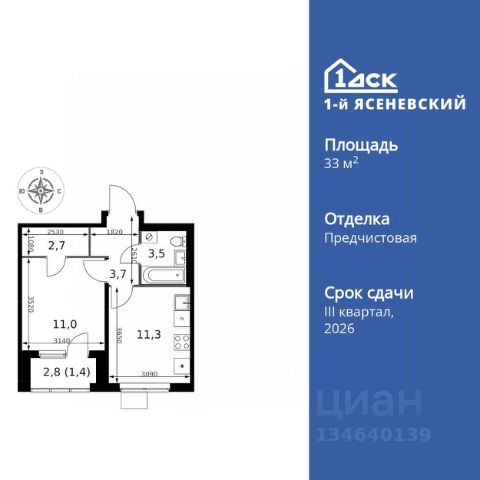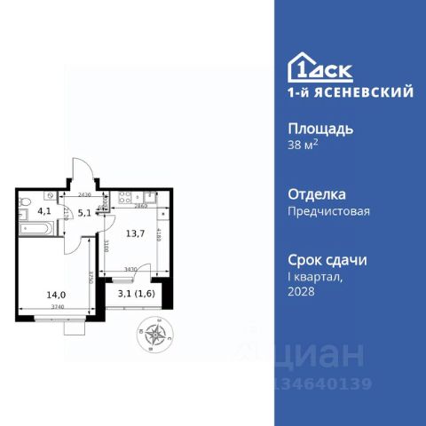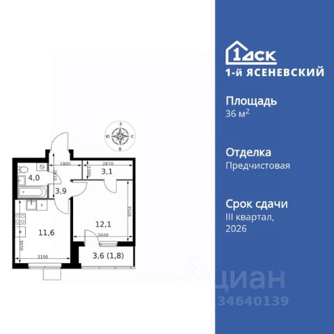 Прямая продажа от застройщика! Жилой Комплекс класса Комфорт Плюс. Продаётся 1-к квартира номер 139 общей площадью 36.2 кв.м. на 15-м этаже 16 этажного здания. Предчистовая отделка. Цена с учётом скидки. Особенности квартиры: - Квартиры рядом с метро - м. Корниловская 9 мин пешком - 63 га лесопарка за окнами - Школа c ИТ-кластером и бассейном. 2 детских сада - Организуем показ в удобное для вас время! - Линейная планировка - максимальная функциональность и удобство. - Гардеробная - удобство для хранения и организации вещей. - Лоджия - уютное место для отдыха и тишины. Квартира с предчистовой отделкой. Вам не придется заниматься черновыми и трудоёмкими работы, а чистовую отделку и дизайн - сделайте на свой вкус. Информация о комплексе: ЖК "1-й Ясеневский": преимущества городской инфраструктуры и природы. Пешая доступность к метро, школе с бассейном и ИТ-кластеру, а также 63 га Троицкого лесопарка под окнами. Закрытая территория с бульварами, велодорожками, кафе и дворами без машин. Фруктовые деревья и городские сады создают уникальную атмосферу. Всего в 1 км от МКАД - идеальный баланс для современной жизни. Транспортная доступность: До метро "Корниловская" - 12 минут пешком До метро "Тютчевская" - 25 минут пешком До метро "Теплый стан" - 10 минут на транспорте До метро "Ольховая" - 30 минут на общественном транспорте Личный автотранспорт: Выезд на Калужское шоссе - 500 м МКАД - 1 км Внутренняя инфраструктура: ЖК "1-й Ясеневский" - идеальное место для семей с детьми. Рядом Троицкий лесопарк для прогулок, а во дворах - современные детские площадки, разработанные с участием психологов. В шаговой доступности два детских сада и школа на 1100 мест с ИТ-кластером, бассейном и классами робототехники. Всё для счастливого детства и успешного будущего. Квартира с предчистовой отделкой - ваш дизайн без черновых работ
