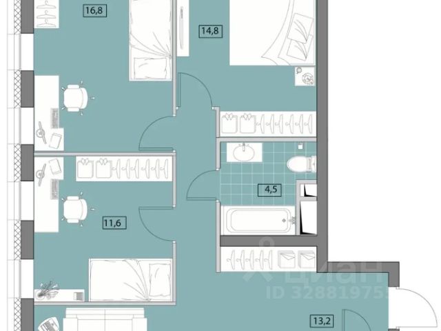 • ✅ Минимальная площадь: 18,4 м²