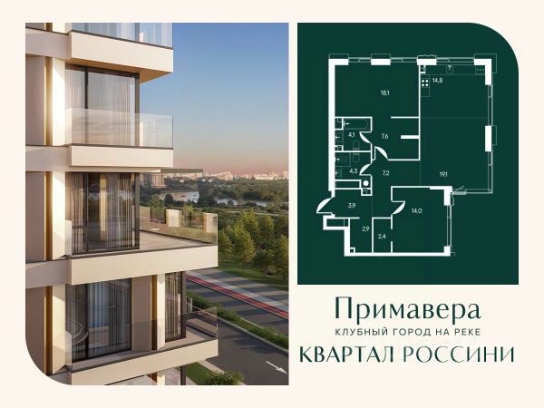 Клубный город на реке "Примавера" — это современный жилой комплекс премиум-класса, расположенный на первой береговой линии Москвы-реки в экологически чистом районе Покровское-Стрешнево. Под панорамными окнами квартир находится собственный экопарк с продуманной сетью прогулочных дорожек и современными детскими и спортивными площадками. За парком расположена набережная с собственным пляжем и зонами для отдыха. Клубный город на реке "Примавера" предлагает широкий выбор планировок для различных жизненных сценариев: от просторных однокомнатных квартир до пентхаусов и жилых помещений с террасами и патио. Выберите из 120 вариантов эргономичных планировок стандартного и евроформата. Из каждой квартиры открываются красивые виды на реку с углом обзора в 270 градусов. Дизайнерские лобби предлагают панорамный обзор на благоустроенный двор. Высокие потолки в 6 метров и качественная отделка создают атмосферу, схожую с пятизвездочными отелями. В "Примавера" есть всё необходимое для комфортной жизни в мегаполисе: • Образование для детей в шаговой доступности: 4 школы, 8 детских садов и развивающие центры с кружками и секциями. • Удобства на расстоянии приятной прогулки: супермаркеты, кафе, рестораны с верандами, салоны красоты, аптеки и многофункциональный центр для шоппинга и развлечений. • Умный дом: автоматизированное бесконтактное управление основными системами доступа и безопасности через мобильное приложение. Клубный город на реке "Примавера" выгодно сочетает комфорт городской жизни с близостью к природе. Живите в месте, где все создано для вашего удобства!