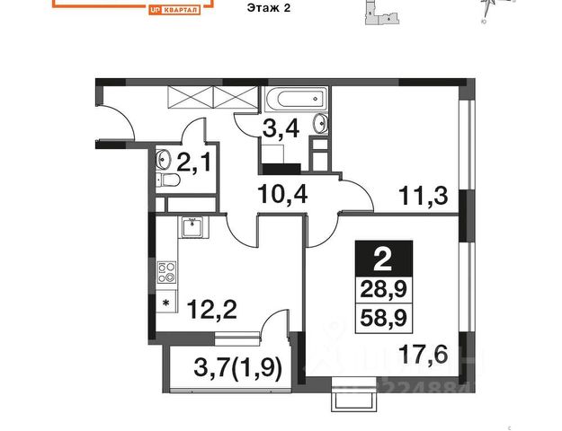 Продаётся 2-к квартира номер 6 общей площадью 58.9 кв.м. на 2-м этаже 16 этажного дома. Без отделки.