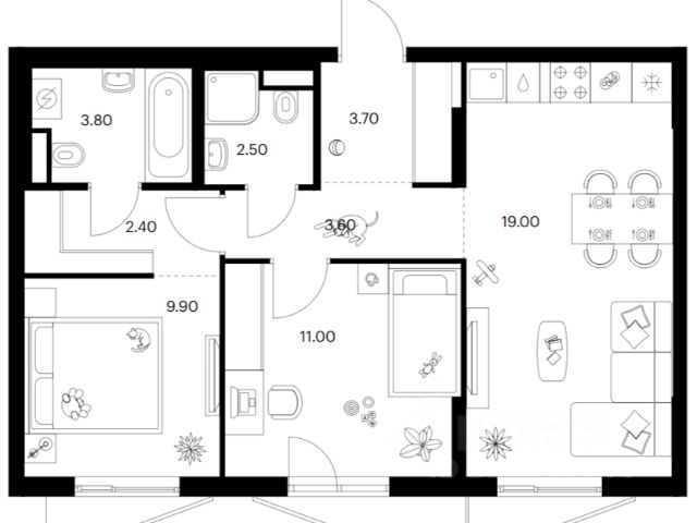 Продается двухкомнатная квартира без отделки в 9 фазе города-парка "Первый Московский". Общая площадь квартиры - 51,5 кв. м, этаж 9 из 19. Срок сдачи - 2 квартал 2027 года. Тип дома - монолитный. Цена указана при 100% оплате. Новый корпус состоит из 3 секций: Все квартиры с отделкой White Box с возможностью дополнительного выбора дизайнерской отделки: Classic или Smart+ Город-парк "Первый Московский" расположен всего в 7 км по Киевскому шоссе (Новая Москва). Из города-парка прямой выезд на Киевское шоссе и трассу Солнцево-Бутово-Варшавское шоссе. ТРАНСПОРТНАЯ ДОСТУПНОСТЬ: - 5 мин. на личном автомобиле или 10 мин. на автобусе 189, 147, 193 до станции метро "Филатов Луг" - 5 мин. на личном автомобиле или 12 мин. на автобусе 863 до станции метро "Саларьево" - 6 мин. на личном автомобиле или 15 мин. на автобусе 333 до станции метро "Рассказовка" РАЗВИТАЯ ИНФРАСТРУКТУРА В ОКРУЖЕНИИ: - общеобразовательная школа 2120 (корпуса д1, д7, ш1-ш5) - детский сад 2120 (корпуса д2, д9) - школа искусств - городская больница, детская поликлиника, филиал 5 - подстанция скорой помощи 58 и пожарно-спасательный центр 313 - отдел полиции, отдел ГИБДД - торговые центры "Столица" и "Новомосковский" - стадион, каток, бассейн - кафе, продуктовые магазины, аптеки, фитнес-центры, салоны красоты и пр. БЛАГОУСТРОЙСТВО: - дворы без машин - разнообразные детские площадки и развивающие комплексы - детские площадки разделены по возрастным группам - максимальная близость корпуса к парку "Филатов луг" - озеленение территории с учетом зонирования, островками для отдыха ОСОБЕННОСТИ АРХИТЕКТУРЫ: - безбарьерные входные группы - велопарковка на -1 этаже - колясочные в каждой входной группе - коммерческие помещения на 1 этаже в трех секциях - кладовые помещения расположены на жилых этажах и на -1 этаже - в каждой секции корпуса - 4 лифта: 2 пассажирских, 2 грузовых - видеонаблюдение установленное в холлах первых этажей, у подъездов и на прилегающей территории АВТОРСКИЙ ДИЗАЙН: Входные группы выполнены по авторскому дизайну, оснащены системой "тёплый пол". В каждой входной группе будет располагаться комфортабельная зона ожидания, почтовые ящики с ячейкой для спама, колясочная, акцентные пуфы и столик.