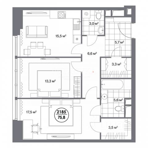 • ✅ Минимальная площадь: 29,5 м²