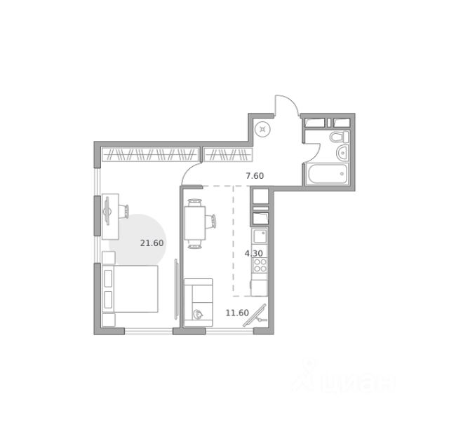 Продаётся 1-комнатная квартира 432, площадью 41,40 м², на 7 этаже в ЖК "Бригантина" корпус 1. Стоимость — от 11413823 руб. Квартира без отделки, планировка односторонняя, окна на улицу.