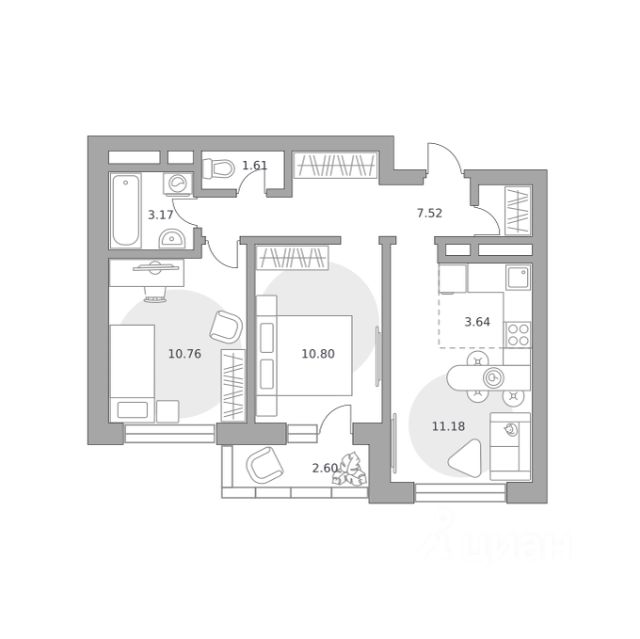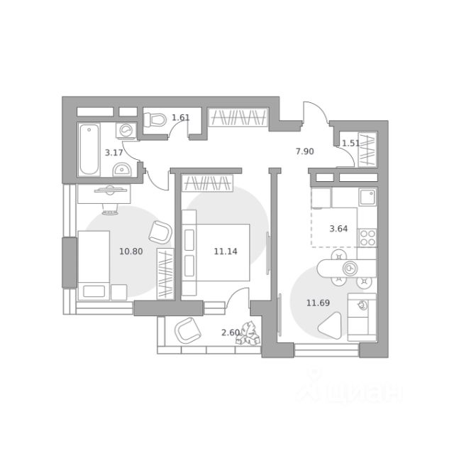 Продаётся 2-комнатная квартира 1840, площадью 36,94 м², на 2 этаже в ЖК "Ильинойс" корпус 3. Стоимость — от 8525174 руб. Квартира без отделки, планировка односторонняя, окна во двор.