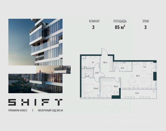4-к квартира в премиальном комплексе SHIFT на 14-м этаже в 18 этажном здании. Общая площадь 150.1 кв. м. SHIFT - новый премиальный проект от девелопера PIONEER в Донском районе, в 300 м от Нескучного сада. Главная особенность проекта - 5 башен, в которых воплощен принцип модульной архитектуры: каждый этаж смещен относительно предыдущего, что создает эффект парящих в воздухе граней. Архитектура SHIFT создана самым востребованным бюро Москвы - "Цимайло Ляшенко и Партнеры". У жилого квартала удобное расположение: Ленинский проспект ведет прямо к Садовому кольцу и в центр, а быстрый выезд на ТТК станет ключом к любому району Москвы. Многообразие сервисов и коммерческих помещений создает в SHIFT всю необходимую инфраструктуру: кафе и рестораны, street retail, супермаркет и многое другое. Преимущества проекта: - Потолки от 3,65 м - Панорамные окна и террасы - Приватный ландшафтный двор-парк 4 000 м2 - Коммерческая инфраструктура 4 000 м2 - Клубная инфраструктура 350 м2 Девелопер: За 22 года на рынке недвижимости компания PIONEER реализовала более 30 проектов. Сегодня PIONEER - девелопер премиальной недвижимости с 4 проектами класса премиум и deluxe. Звоните, и мы с удовольствием расскажем все подробности о проекте и условиях покупки. Продажа от застройщика. Покупка доступна в ипотеку.