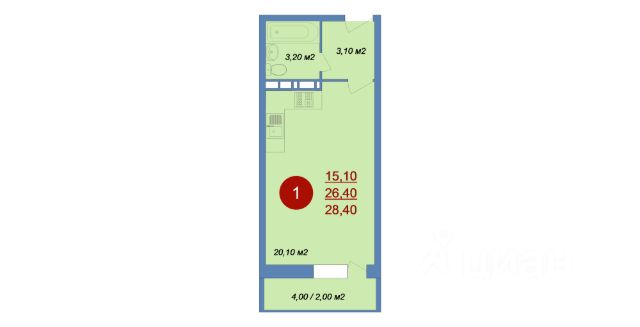 • ✅ Минимальная площадь: 21,3 м²