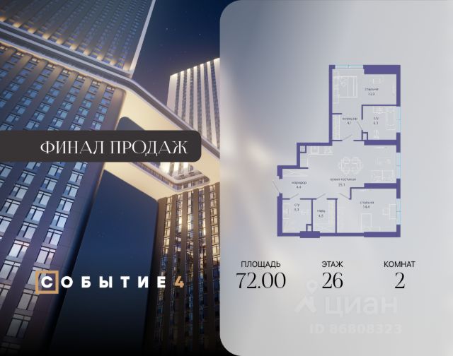 ДОМ: монолитная башня 2000г.п., 25 этажей. Огороженная территория, своя детская площадка. Красивая входная группа. Консьерж. 4 лифта.