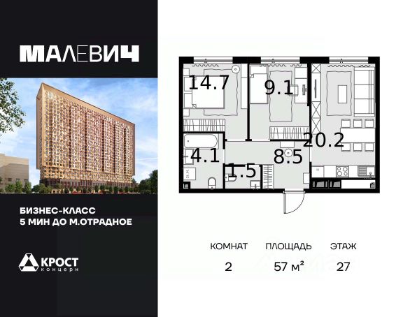 Продаётся 3-к квартира 60.6 кв.м. на 27-м этаже 28 этажного дома. Без отделки. Срок сдачи: 2 кв. 2026 г. Дом МАЛЕВИЧ - это идеальный проект мультифункционального жилого дома, в котором все элементы общественных и личных пространств тщательно продуманы и спроектированы. Здание состоит из двух объемов, один из которых сдвинут относительного другого в горизонтальной плоскости. Авторы идеи придумали совмещать различные слои и цвета бетонов в одной плоскости и рисовать картины не кистью и красками, а различными рецептами бетонов. Картины украсят полы, стены и потолки входных групп, подземного паркинга, мест общего пользования. В Доме МАЛЕВИЧ не один, а сразу 2 парковых общественных пространства, каждое из которых обладает собственной функцией: - внутренний двор только для жителей во внутренней части здания; - открытый парк-вернисаж на ул. Отрадная, доступный для внешних посетителей. Проект дома расширяет возможности вашей квартиры, предоставляя дополнительное пространство для работы, отдыха, учебы, дружеского общения и воспитания детей.Прямая продажа от застройщика ООО СЗ "Аквапарк "Отрадное ".