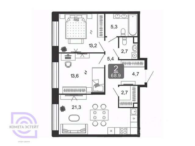 Продается 2-к квартира без отделки в ЖК "Shagal". Общая площадь квартиры — 79.1 кв. м, этаж 7 из 7. Тип дома — монолитный. Цена указана при 100% оплате. Квартал Shagal — крупнейший проект комплексного освоения в Москве. В проекте реализуется продуманная система маршрутов. Еда, покупки, услуги, прогулки, спорт, образование, работа и развлечения — все будет находиться рядом с домом: принцип 15-минутной доступности инфраструктуры и сервисов. Разнообразие и продуманность пешеходных маршрутов, а также короткие расстояния между основными точками притяжения мотивируют резидентов Shagal с удовольствием передвигаться по району пешком, не выпадая из ритма большого города. Продуманная транспортная сеть района и безопасный скоростной режим создают комфортные условия для перемещений любым способом: на автобусе, машине, самокате или велосипеде. Не нужно выезжать из района, чтобы получить комфорт и сервис самого высокого современного стандарта: все необходимые услуги, инфраструктура, парки и вторая по протяженности набережная в городе — на расстоянии 15-минутной прогулки от вашего дома. Квартал Shagal станет первым в Москве жилым районом, где будут комплексно реализованы инновационные подходы в проектировании и строительстве зданий. Архитектурная композиция состоит из домов отличающегося типа. Высотные башни-доминанты с видовыми квартирами, дома пониже, растворяющиеся в спокойствии внутренних двориков, малоэтажные камерные таунхаусы и разноэтажные дома с лоджиями на первой береговой линии соединяются в одно эстетичное современное произведение. В результате создаётся насыщенное идентичное пространство, подчёркнутое плавностью природных форм, наполненное светом, воздухом и свободой.