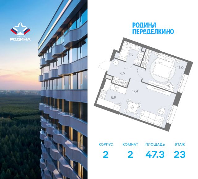 Продаётся 2-комнатная квартира площадью 50.1 м² на 2 этаже в Жилом Комплексе "Родина Переделкино". Первый в России киберспортивный кластер от Группы Родина. Это жилой квартал бизнес-класса на Западе Москвы на границе с Ульяновским лесопарком, состоящий из пяти высотных зданий с подземной одноуровневой автостоянкой. В жилом комплексе широкий выбор вариантов жилья — от компактных студий до просторных 5-комнатных квартир. Помимо комфортных европланировок, представлены уникальные форматы: квартиры с панорамными гостиными, квартиры с террасами на 2 этаже. Преимущества расположения: • 3 минуты пешком до метро "Новопеределкино" • Лесные массивы - чоботовский лес, ульяновский лесопарк и мещерский природный парк. • Прямой выезд на Боровское Шоссе • 30 минут транспортом до делового центра Москва - Сити • 10 минут на машине до аэропорта "Внуково" Развитая инфраструктура: • 5 жилых корпусов • Деловой центр с Welness и SPA • Мультиарена с развлекательным digital - центром • Гастроулица: кофейни, рестораны, стритфуды