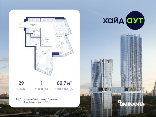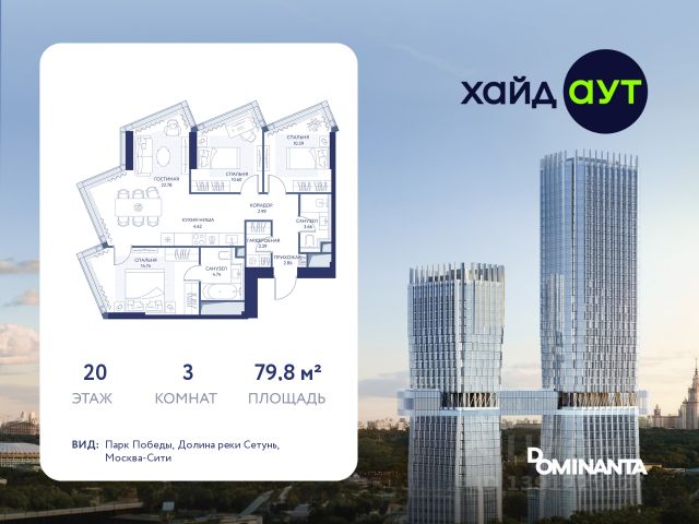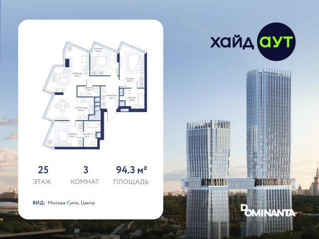 Прямая продажа от застройщика! Продается 3-комнатная квартира площадью 129 кв.м. на 33-м этаже 49-этажного дома в жилом комплексе ХАЙДАУТ с панорамными видами: Парк Победы, Долина реки Сетунь, МГУ, Москва-Сити, Воробьевы горы. Высота потолков 3,25 м. В ХАЙДАУТ доступны различные условия покупки — от специальных предложений при полной оплате до комфортных программ рассрочки и индивидуальных ипотечных решений. ХАЙДАУТ — премиальный проект компании Dominanta. Это новый уровень жизни и комфорта без компромиссов. Две башни — 34 и 49 этажей — открывают захватывающие виды на Москву. Архитектурной доминантой проекта становится мост, соединяющий башни на высоте 80 метров. Закрытая территория, охрана 24/7, зона экстренной безопасности на подземном уровне, система пожаротушения. На мосту между башнями на 22-м этаже находится общественное пространство SocialHUB — предусмотрено 16 комфортных пространств для работы, отдыха и развлечений с панорамными видами и клубным форматом доступа. Концепция благоустройства ХАЙДАУТ — баланс между природой и технологичным городом будущего. На территории сада предусмотрены 15 зон для отдыха, работы, спорта и детей. Знаковым местом станет центральная площадь с амфитеатром и водопадом — сочетание камней, растений и струящейся воды создает идеальный баланс с природой. Застройщик АО "СЗ "ХАЙДАУТ", ИНН 7729058636, ОГРН 1027739319420. Проектная декларация на сайте наш.дом.рф. Предложение не является публичной офертой.