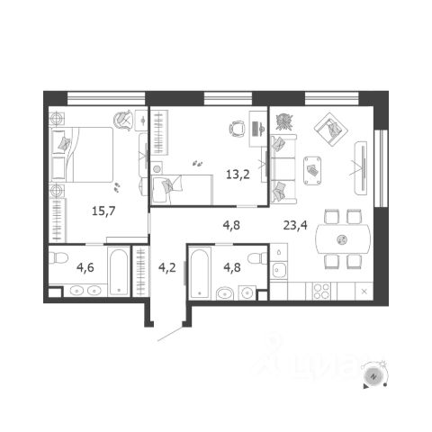 Продаётся 2-комнатная квартира в строящемся доме (Корпус 6 (3 очередь)), срок сдачи: IV-кв. 2026, общей площадью 69.5 кв.м., на 11 этаже. Это город в городе, который не подстраивается под старые рамки, а задает новую планку и стандарт жилого района в России. Здесь создается самодостаточная и цельная среда, в которой есть место для реализации потребностей каждого жителя. Архитектура и общественные пространства района спроектированы на основе ежедневных сценариев жизни конкретных пользователей. Весь район спроектирован на основе принципа 15-минутной доступности необходимой инфраструктуры и продуманных прогулочных маршрутов. Разнообразие пешеходных маршрутов и короткие расстояния между основными точками притяжения дают возможность резидентам Shagal больше передвигаться пешком, не выпадая из ритма большого города. При этом разноформатная транспортная сеть района и безопасный скоростной режим создают комфортные условия для перемещений любым другим способом: на автобусе, на машине, на велосипеде.