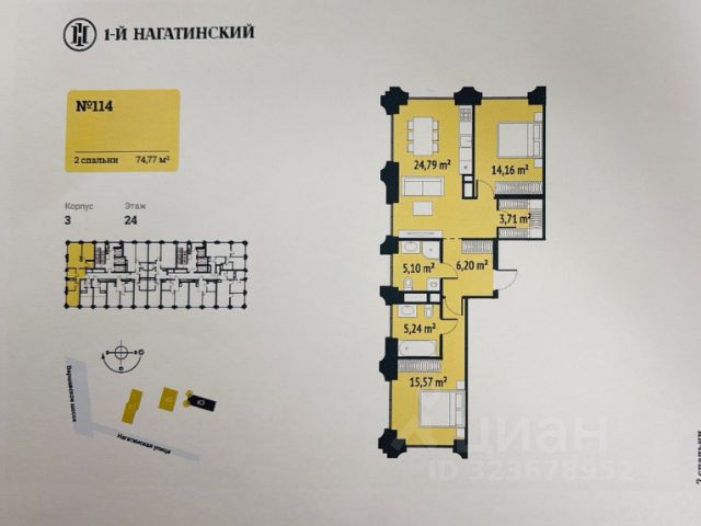 Старт продаж второй очереди ЖК Первый Нагатинский! Продаётся 2-комнатная квартира площадью 61,3 м², расположенная на 23 этаже корпуса 2,1. Панорамные виды на город, современные планировочные решения и выгодные условия покупки. Прямая продажа от застройщика — лучшие цены на старте! В ноябре 2025 года совместно со Сбер действует ипотечная программа на эту квартиру с фиксированной ставкой 13,9% на весь срок кредитования. Также доступна программа рассрочки до конца 2028 года с фиксированными платежами от 60 000 рублей. Подробности у менеджеров отдела продаж в онлайн-чате справа. Первый Нагатинский — самый масштабный жилой квартал, формирующий новый облик района и задающий стандарты жизни бизнес-класса. Транспортная доступность. Находится в сердце Южного округа Москвы — районе с уже сложившейся и богатой инфраструктурой. Внешняя среда проекта усиливает комфорт жизни: рядом расположены зелёные парки, современные спортивные объекты, торговые центры и престижные образовательные учреждения. м. Нагатинская ~ 3 мин. МЦК Верхние котлы ~ 5 мин. Речной причал ~ 15 мин. ТТК ~ 10 мин. Садовое кольцо ~ 15 мин. Благоустройство премиального уровня. Ландшафтные архитекторы бюро А4 продумали благоустройство квартала как систему взаимосвязанных пространств для отдыха и вдохновения. Уникальное wellness-пространство гармонично вписано в городской ландшафт и создает атмосферу уверенности и спокойствия. 10 000 зеленых насаждений Японский сад Зона у огня с биокамином Зона у воды Арт-тропа Променад Воркаут-площадка Зона релаксации в гамаках Нетворкинг под открытым небом Инфраструктура нового поколения. Приватные клубные пространства, пляжный клуб на берегу Москвы-реки, детские зоны нового поколения и творческие студии формируют единый ритм жизни, где комфорт и возможности не имеют границ. Эстетика каждого элемента и продуманная логистика превращают повседневность в удовольствие, а привычные будни — в лучшие сценарии жизни. Скай-бар на 28 этаже Гурме вилла Приватный СПА и фитнес премиум-класса Тренажёрный зал, зал для групповых занятий Хамам и финская сауна Коворкинг-клуб Клубный лаундж Клубный кинотеатр Сигарная комната Музыкальная студия Арт-зал с подиумом Игровая зона и настольные игры для детей Класс для обучения и мастер-классов Детские площадки круглый год Пляжный клуб для резидентов Образовательный кластер внутри квартала. Внутри квартала созданы пространства для образования, творчества и игр, где дети могут развиваться, раскрывать таланты и чувствовать себя в безопасности — не покидая территории своего дома. Школа нового поколения на 1000 учеников Лучший детский сад в Москве с бассейном Тематическая детская площадка Гора Фудзияма и Большая волна Архитектура. Архитектура жилого квартала отражает современный комфорт и безупречный стиль. Каждая деталь фасадов продумана с вниманием к эстетике и качеству. Навесная 3D-фасадная система придаёт зданиям выразительность, ускоряет монтаж и обеспечивает долговечность конструкции. Проект создан ведущими архитекту