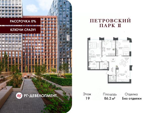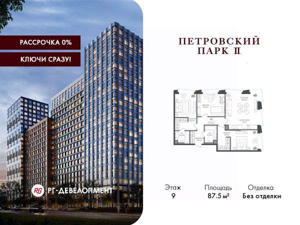 Рассрочка 0%. Первый платёж 30%, второй - не позднее 31.12.2026 г. Продаётся 3-комнатная квартира 102.3 кв.м. в ЖК "Петровский парк II" на 22-м этаже 25 этажного дома. ЖК "Петровский парк II" — жилой комплекс в Савёловском районе, где город ощущается иначе. Здесь история и масштаб Москвы не давят, а задают фон для спокойной, уверенной жизни рядом с центром. Это место, где статус читается не в громких формулировках, а в окружении, архитектуре и ощущении пространства. Коротко о важном: • Район с глубоким историческим контекстом и парковым окружением; • 5 минут пешком до метро "Динамо", рядом с деловой и культурной жизнью города; • Редкое сочетание: энергия мегаполиса и тишина зелёных аллей; • Архитектура от бюро Синтаксис с пластикой форм и индивидуальным характером фасадов; • Панорамные виды на город и зелёные массивы Петровского и Тимирязевского парков; • Закрытый двор без машин, вдохновлённый эстетикой дворцовых садов; • Просторные входные группы с высокими потолками и выверенной, респектабельной эстетикой; • Частный детский сад во дворе; • Подземная парковка и кладовые; • РГ-Девелопмент - ТОП-20 крупнейших застройщиков Москвы. Расположение комплекса формирует особое ощущение свободы выбора. Утром - прогулка по тенистым аллеям Петровского парка, днём - работа и встречи в деловых кластерах поблизости, вечером - культурные события, рестораны и городские пространства в нескольких минутах пути. Здесь расстояния измеряются не километрами, а шагами от дома. Архитектура "Петровского парка II" задумана как современный архитектурный акцент района и одновременно как уважительный диалог с исторической средой. Асимметричные объёмы, волнообразные элементы и игра света и тени создают выразительный, но сдержанный силуэт. Архитектура наполнена воздухом и визуальным ритмом, оставаясь спокойной и уверенной. Общественные пространства продолжают эту логику. Два парадных вестибюля с высокими потолками и благородной цветовой палитрой воспринимаются как пространства, где хочется замедлиться: встретить гостей, перевести дыхание после дня или просто почувствовать уровень среды, в которой вы живёте. Внутренний двор комплекса - это отдельный мир, закрытый от машин и городского шума. Продуманное благоустройство территорий отсылает к регулярным дворцовым садам: геометрия аллей, зелёные "кабинеты", цветники и камерные зоны отдыха создают разные сценарии для повседневной жизни. Здесь органично соседствуют детские игровые пространства, спортивные зоны и тихие места для отдыха. На территории комплекса расположены магазины, кафе и рестораны, а также частный детский сад, встроенный в общую структуру двора. Подземная парковка и кладовые поддерживают ощущение порядка и цельности пространства.
