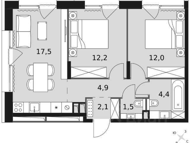 • ✅ Минимальная площадь: 30,1 м²