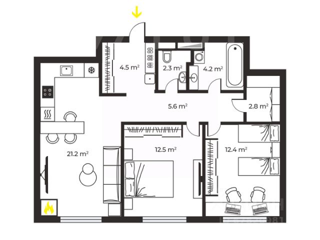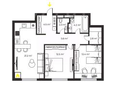 Двуспальная квартира с камином, просторной кухней-гостиной, двумя изолированными спальнями и двумя санузлами. Окна выходят на ландшафтный двор-парк. "Достижение" - единственный дом с торжественной архитектурой в окружении бескрайних парков на любой вкус: парк "Дубовая роща", обновленный классический парк "Останкино", самый известный парк России ВДНХ и крупнейший в Европе ботанический сад. Дом находится в непосредственной близости от центра города: до Садового кольца на автомобиле - 15 минут, 700 м до станции метро "Бутырская", а от нее всего 3 станции на метро - и вы на Цветном бульваре. Архитектура проекта - современное прочтение торжественного и изящного стиля ар-деко, который, как и сталинский ампир, сформировался в результате развития идей чикагской школы. В доме 6 секций, 115 вариантов продуманных планировочных решений - от уютных студий до просторных пентхаусов с дровяным камином. В каждой квартире предусмотрен полный комплекс систем комфорта: принудительная центральная вентиляция с фильтрацией воздуха, очистка воды до уровня питьевой, круглогодичное горячее водоснабжение, быстрые бесшумные лифты, которые идут прямо в паркинг, продуманная подготовка под кондиционирование и другие технологические решения. В доме "Достижение" общественные пространства и квартира тоже гармонично дополняют друг друга, как части единого целого. Здесь есть инфраструктурный центр Clubhouse только для жителей, открывающий возможности для общения и детского развития: клубная гостиная жителей по стандарту Friend`s Lab и детская игровая комната 250 кв.м. в концепции Kid`s Lab. На площади 1,7 гектара создан живописный парк с террасным склоном, в котором растут луговые травы, кустарники и деревья. Пространство ландшафтного парка разделено на зоны для активного и спокойного отдыха с зелёными уголками для любителей тишины. Для спокойного отдыха: тихие места с беседками и шезлонгами, клубная гостиная в концепции Friend`s Lab с открытой террасой и гамаками, зона для барбекю, смотровая галерея, уютный пруд, а также пять пеших маршрутов для променада. Для активного отдыха: универсальная многофункциональная спортивная площадка, отдельная зона для занятий workout и бесплатный фитнес-зал только для жителей по стандарту Fit Lab. В центральной части парка расположен амфитеатр со сценой для представлений и проведения мероприятий. Для гармоничного развития маленьких жителей - пространства по стандарту Kid`s Lab для гармоничного развития детей всех возрастов: детская площадка, игровая комната, рельефная площадка для общения со сверстниками, где можно заниматься паркуром, танцевать и играть в настольный теннис.