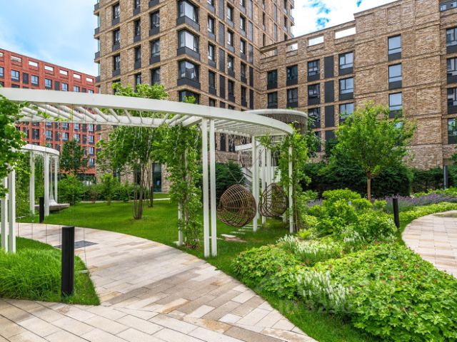 Во дворах — тематические парки, сады с прогулочными аллеями и мостами, приватные лаунж зоны, 5G интернет.