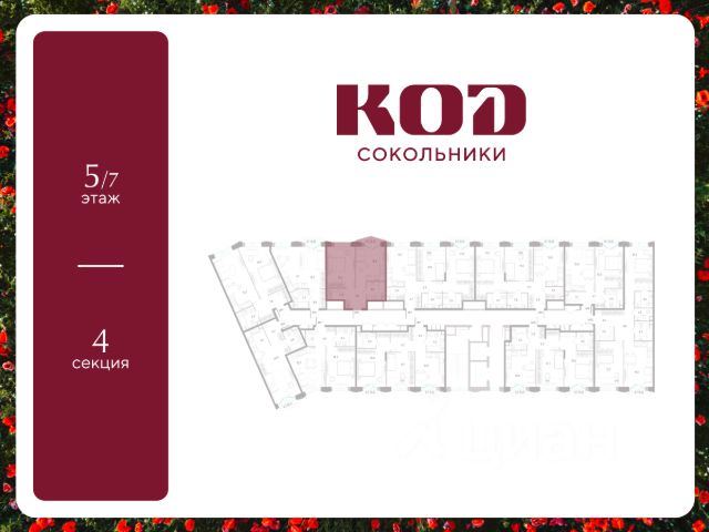 В семейном жилом квартале, расположенном в окружении более 500 га леса и объектов исторического наследия, продается 1-комнатная квартира площадью 39 кв. м без отделки. Квартира расположена на 5 этаже 7-этажного корпуса 2.1 жилого квартала бизнес-класса КОД Сокольники от девелопера Новая Эра. Отличная транспортная доступность - 3 мин. пешком до станции МЦД-3 "Митьково"; - 7 мин. пешком до станции метро "Сокольники"; - Удобный выезд на Русаковскую улицу; - 5 мин. на авто до ТТК; - 15 мин. на авто до Садового кольца. Продуманный архитектурный проект - Выразительная архитектура, созданная бюро "Остоженка"; - 70% квартир в квартале - видовые, что позволяет ежедневно наслаждаться панорамами на парк Сокольники, Останкинскую телебашню, исторический центр и Алексеевский монастырь; - 30% квартир - угловые. Увеличенные оконные проемы, панорамное остекление и продуманное расположение комнат усиливают эффект обзорности: гостиные и спальни получают максимум дневного света и живописные виды, которые становятся частью интерьера; - Высокие потолки от 3 метров в типовых планировках; - Дизайнерские лобби от модной студии 211.Studio; - Двухуровневый паркинг с подогреваемой рампой и пологим заездом, подходящим даже для спорткаров; Расположение Семейный жилой квартал КОД Сокольники - это дома бизнес-класса в престижном районе Сокольники. Район отличает хорошая транспортная доступность: несколько минут пешком до станции метро "Сокольники" и платформы МЦД-3 ("Митьково"), регулярные трамвайные и автобусные маршруты, удобный выезд на Русаковскую улицу и Третье транспортное кольцо. До Садового кольца можно доехать за 15 минут. Для пешеходов и велосипедистов в парковой зоне будут оборудованы широкие тротуары и велодорожки, обеспечивая комфортные условия для активного образа жизни. Внутренняя инфраструктура Резидентам будет доступна развитая клубная инфраструктура: собственный фитнес-рум, коворкинг с панорамным видом на парк, игровая комната для детей, пространства для мастер-классов и просторная гостиная, которую можно использовать для отдыха, просмотра кино или проведения мероприятий. На первых этажах жилых домов разместятся объекты стрит-ритейла: кафе, рестораны, магазины и различные сервисы - от аптек и салонов красоты до ателье и барбершопов. Рядом с жилыми корпусами появится деловой квартал с офисами и торговыми площадями на 75 тысяч кв. м, что делает проект привлекательным для тех, кто ценит возможность жить и работать поблизости. Благоустройство Центральным элементом квартала станет благоустроенный двор-парк площадью 3 га с собственным прудом и зелеными зонами для прогулок и отдыха. В границах двора предусмотрены современные игровые и спортивные площадки: мультифункциональная зона воркаута, площадки для волейбола и стритбола, площадки для пилатеса и йоги, скалодром, а также беговые и веломаршруты. В состав проекта войдет образовательный центр, включающий детский сад для 350 малышей, а также школу на 650 учеников.