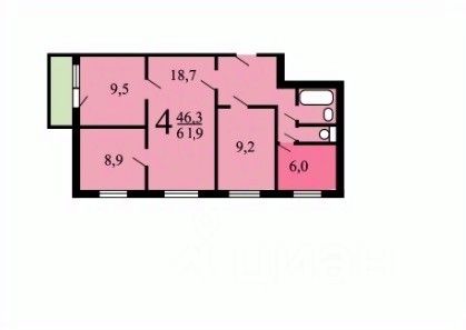 Три раздельные комнаты предлагают уединение и функциональность, а отдельный санузел добавляет удобства.