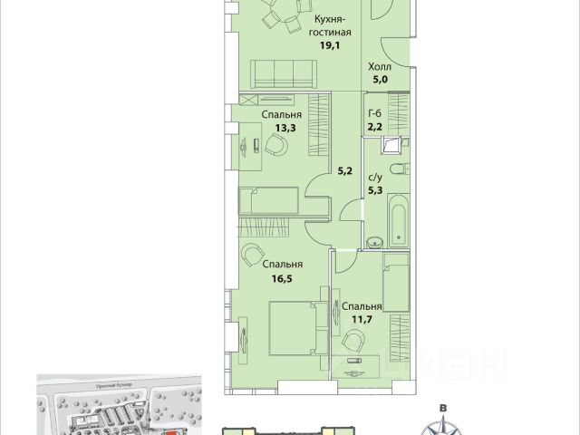 • ✅ Минимальная площадь: 32,4 м²