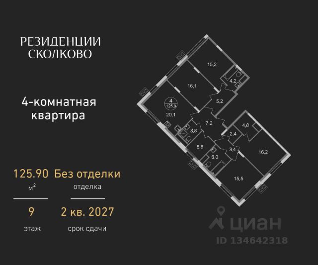 Дом сдан! Продается двухкомнатная квартира в девятиэтажном монолитном доме жилого комплекса "Резиденции Сколково". Общая площадь квартиры - 77,6 кв. м, этаж 5 из 9. Срок сдачи - 3 квартал 2024 года. Резиденция имеет отапливаемый подземный паркинг на 286 мест с доступом без выхода на улицу. ЖК "Резиденции Сколково" - это современный проект бизнес-класса, расположенный в престижном районе Сколково, у западной границы Москвы. Транспортная доступность: - 0 км от МКАД - 10 минут на личном авто до метро "Озёрная" Солнцевской линии - 15 минут на личном авто до Москва-Сити по Кутузовскому проспекту - 20 минут на личном авто до центра по проспекту Генерала Дорохова - 24 минут на личном авто до центра по Мичуринскому проспекту - Проспект Багратиона - бессветофорная дорога Благоустройство и инфраструктура: Масштабное озеленение в концепции "двора-парка" и множество площадок отдыха для взрослых и детей. В 5 минутах ходьбы расположен Мещерский лесопарк. В жилом комплексе уже построены и работают 2 муниципальных детских сада с бассейном, планируется строительство 1 школы. В непосредственной близости - частные и муниципальные детские сады и школы, кафе и рестораны, продуктовые магазины, салоны красоты и другие готовые объекты городской инфраструктуры. Безопасность: Огороженная, закрытая территория, круглосуточное видеонаблюдение, контроль доступа во внутренний двор. Авторская архитектура: Авторская концепция архитектуры: панорамное остекление, французские балконы, стильные просторные лобби. Входные группы на уровне земли. Для удобства жителей на первых этажах предусмотрены помещения для колясок и велосипедов. Продается квартира с двумя санузлами в Московской области.