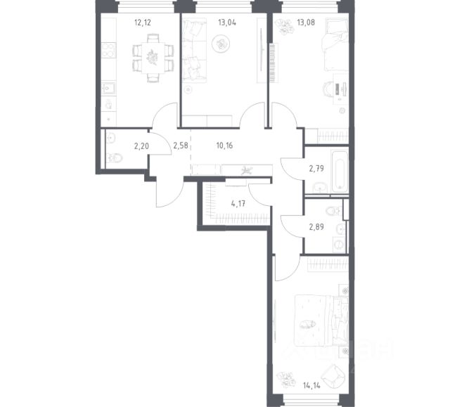 Строим кварталы для жизни с заботой о будущем. Предлагается 3-комнатная квартира комфорт-класса площадью 79,08 кв.м в корпусе 1 на 10-м этаже, в жилом комплексе "Космический Квартал". Квартиры комплекса — на выбор: могут быть как с отделкой, так и без. В случае с готовой отделкой в комнатах и прихожей уже будут обои, натяжные потолки и ламинат, а в санузлах — керамогранит на полу и керамическая плитка на стенах. Мы подведем все коммуникации и установим сантехнику. Светлые тона визуально делают комнаты еще просторнее. Вы легко воплотите любые идеи по обустройству и создадите интерьер в современном или классическом стиле. Можно сразу заказать кухню, комплекты мебели, светильники, декор и даже посуду в нашем маркетплейсе — мы полностью подготовим квартиру к новоселью. Приобрести квартиру возможно по специальным акциям от застройщика, с текущими условиями акций можно ознакомиться в блоке "Акций". Цена динамическая и может отличаться, уточняйте актуальность у застройщика. "Космический Квартал" находится в Московской области, в Королеве. В Королеве находятся несколько парков и лесов, а реки Клязьма и Яуза окружают наукоград с двух сторон. Путь до Москвы будет быстрым и удобным: до МКАД — 20 минут на автомобиле, а до ж/д станция Болшево - 8 минут на авто или 20 минут пешком. В проекте предусмотрены собственный детский сад, многоуровневые паркинги, а также магазины, спортзал, ресторан и аптеки на первых этажах домов. Неподалеку от квартала находятся городские гимназии 3 и "Ковчег" и лицей 4. "Космический Квартал" — это 3 монолитных дома высотой 12-17 этажей. Во внутреннем приватном дворе-парке будут детские и спортивные площадки. А для занятий спортом будут обустроены воркаут-пространства. Все подъезды — с безбарьерным входом. В лобби есть помещения для велосипедов и колясок. На техническом этаже — индивидуальные кладовые для сезонных вещей. Продуманные планировки от небольших студий до просторных 4-комнатных квартир с гардеробной, постирочной и гостевым санузлом. Квартиры сдаются как с отделкой, так и без нее.