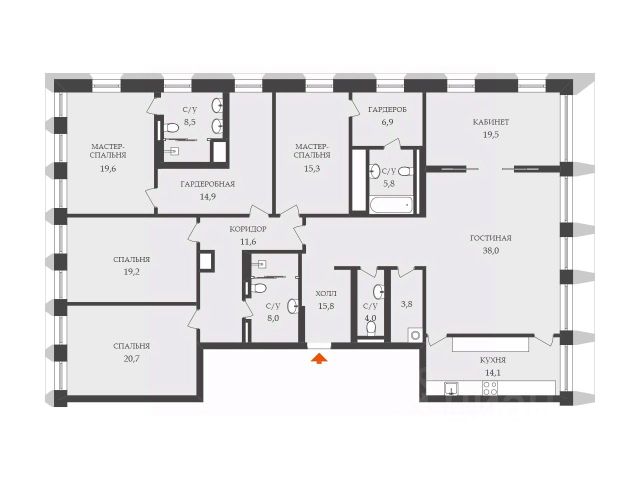 • 3 Спальни, кабинет, просторная гостиная, гардеробные при каждой