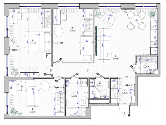 - Терраса 1 (К=0,3): 2,5 кв. м.