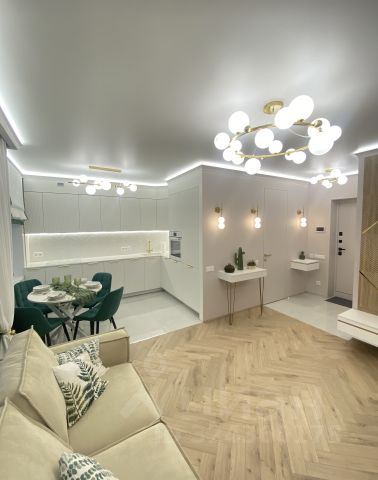 Площадь квартиры 155 кв.м, потолки 3,2 м, перепланировка выполнена в соответствии с законом (все документы имеются). На первом уровне расположены: прихожая, санузел и три комнаты (просторная кухня-гостиная, спальня, кабинет). Санузел оборудован итальянской сантехникой, английской душевой кабиной, элегантной мраморной ванной; пол и стены отделаны керамогранитом Kerama Marazzi; выполнен авторский витраж с подсветкой. Из кухни-гостиной на второй этаж ведет красивая деревянная лестница, которая является украшением квартиры. На втором уровне расположены: просторная комната отдыха с электрокамином, две изолированные спальни со встроенной мебелью, санузел, встроенная система хранения.