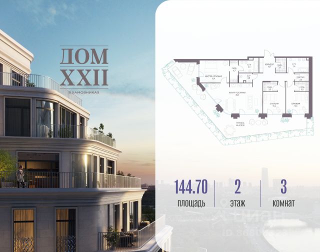 • 3 Спальни, кабинет, просторная гостиная, гардеробные при каждой