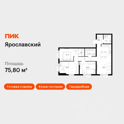 Продаётся 3 - комнатная квартира в готовом доме (Калинина, 11), срок сдачи: Дом сдан, общей площадью 111.30 кв.м., на 12 этаже. ЖК "Дом-Мегалит в Королеве" расположен в историческом центре на пересечении двух центральных улиц — ул. Калинина и ул. Циолковского. Дом расположен в окружении парков и утопает в зелени. Окружающая среднеэтажная застройка подчеркивает дом как высотную доминанту исторической застройки Королёва. Жилая часть дома начинается с пятого этажа, поэтому 95% квартир в проекте — видовые. Квартиры просторные, со свободными планировками, которые каждый может обустроить на свой вкус: запроектировать кухни-гостиные со столовыми зонами, гардеробные, места для систем хранения, детские и спальни. Потолки высотой 2,9 метра делают каждую квартиру еще комфортнее и светлее. На 17 и 18 этажах расположены квартиры со вторым светом. Во всех квартирах глубокие балконы, многие из которых по площади сопоставимы с полноценной комнатой. На балконах есть система дренажа для кондиционеров, благодаря чему фасад здания сохранит свой первоначальный облик. Из подземного паркинга к своей квартире можно подняться на лифте. Дизайн мест общего пользования и благоустройство придомовой территории выполнены по индивидуальному проекту. Предусмотрен безопасный закрытый двор с детской игровой площадкой и спортивной зоной, уютными местами отдыха. Проект уникален по своему наполнению: вся необходимая для комфортной городской жизни инфраструктура будет в составе самого комплекса. Здесь откроется многофункциональный центр с магазинами и сервисами ежедневного спроса. Расположение комплекса отличает полностью сформированная транспортная, торговая и социальная инфраструктура. В шаговой доступности находятся пять детских садов и три школы, а также фитнес-центр. Транспортную доступность обеспечивает развязка с Ярославским шоссе. Дорога до центра Москвы займет 40 минут на автомобиле. Ближайшая ж/д станция располагается в 400 метрах, что позволит добраться до Москвы без пробок за 30-35 минут. Корпорация "Мегалит" — более 30 лет на рынке недвижимости. ЗАО "Мегалит" входит в перечень системообразующих предприятий Санкт-Петербурга как один из крупнейших застройщиков региона. Девелопер отличается выполнением своих обязательств перед дольщиками и партнерами. Элитное жилье - квартира рядом с метро Медведково.