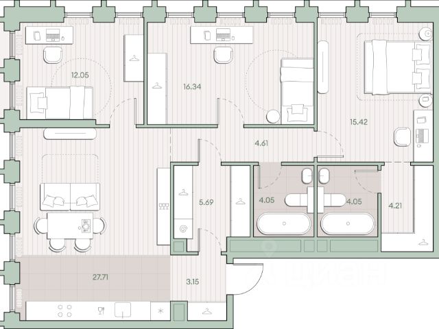 О квартире Продаётся 3-комнатная квартира общей площадью 85.61 кв.м. без отделки. Квартира расположена на 7 этаже корпуса 4.2 в жилом комплексе бизнес-класса "Среда на Кутузовском" в пешей доступности от метро "Кунцевская". О жилом комплексе Комплекс предназначен для людей, которые ставят в приоритет свой комфорт, умеют прислушиваться к себе и понимают, что нужно для внутренней гармонии. Это проект для тех, кто ценит свое время и использует его правильно. Для тех, кто умеет радоваться тому, что есть. "Среда на Кутузовском" — личное место силы и гармонии в двух шагах от центра города. Инфраструктура Жилой комплекс строится в престижном и зеленом Кунцево. Здесь расположены различные торговые центры, престижные учебные заведения (МГУ, РЭУ им. Плеханова, Финансовый университет при Правительстве РФ, РУДН) медицинские клиники. Представлены широкие возможности для поклонников разных видов спорта: от бега в ближайших парках и велозаездов до гребли, баскетбола, футбола, хоккея, фигурного катания и катания на лыжах. На каждый день подойдет World Class с открытым бассейном — он находится всего в 1 минуте от дома. Выбор мест для прогулок также разнообразен: Суворовский парк, лесной массив Крылатских холмов, Москворецкий парк и природный заказник "Долина реки Сетунь". 10 мин пешком: -м. Кунцевская -вся необходимая инфраструктура До 15 мин на авто: -Северо-Западная хорда -Кутузовский проспект -Рублевское шоссе -МКАД -Можайское шоссе Особенности Проект сочетает в себе ритмичность и динамичность, благодаря своей архитектуре, при он этом окружен зеленью и парками. "Среда на Кутузовском" погружает в активный и разнообразный образ жизни, дает вариативные возможности досуга и вдохновляет на новые свершения. —Зоны отдыха у воды —Принцип многослойности в архитектуре —Зона барбекю —Пентхаусы —Умный паркинг —Гайдбук по управлению умным домом —Окна в пол на всех этажах