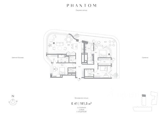 Представляем пентхаус на 9 этаже Резиденций PHANTOM. Общая площадь лота составляет 354,5 кв.м. и включает три мастер-спальни с собственной ванной и гардеробом, большую кухню-гостиную, приватное патио, прачечную и гостевой санузел. В квартире выполнена финишная отделка с использованием натурального дерева и камня, ванные комнаты и кухни полностью оборудованы современной техникой и мебелью. Среди ее достоинств - окна на три стороны и дровяной камин в гостиной. Досконально выверенное планировочное решение создает функциональное и визуально легкое пространство. Высокие потолки и большие окна наполняют квартиру воздухом и светом. PHANTOM пространство абсолютного физического и эмоционального комфорта. Клубный дом класса deluxe, за футуристичными и плавными фасадами которого скрыт приватный мир, создающий идеальную среду для жизни. Преобладание белого цвета в экстерьере, сплошное остекление, неравномерный ритм террас и обтекаемость контура фасада создают эффект невесомости. Дом словно парит в воздухе. Мягкие природные линии фасада плавно переходят во внутреннее пространство здания. Здесь все сценарии жизни объединяются в высококлассной клубной инфраструктуре: собственный корт для падел-тенниса, терраса на крыше с открытым камином и дизайнерским водопадом, кинозал, сигарная, двухуровневый ивент-холл, библиотека, переговорная, панорамный фитнес зал, игровая и комната красоты. Внутренняя территория полностью закрыта от посторонних. Это природный оазис с водной архитектурой, зонами отдыха, уютными беседками и детской площадкой. Здесь легко отстраниться от городского шума и почувствовать комфорт. Подземный паркинг имеет удобный въезд для спорткаров и автомобилей представительского класса, зарядные станции для электромобилей, автомойку, комнату хранения велосипедов, келлеры и валет сервис. Вы всегда сможете оставить свой автомобиль у входа в лобби и получить его чистым в нужное время. Все машиноместа имеют увеличенную площадь.