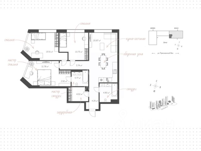 Продаётся 6 - комнатный пентхаус в готовом доме (Корпус 2), общей площадью 434.4 кв.м., на 21 этаже. О жилом комлексе Жилой квартал Lucky - это переосмысление и регенерация общественно-делового кластера площадью более 4.5 гектаров в центре Москвы. О застройщике Девелопер проекта Vesper специализируется в премиальном сегменте клубной жилой недвижимости. Портфель компании включает 22 проекта в Москве и странах Европы. Актуальные архитектурные проекты, индивидуальный дизайн, передовые технологии, качественные материалы и лучшие мировые практики воплощены в каждом доме компании. Расположение и транспортная доступность Квартал расположен на пересечении улиц 2-ая Звенигородская и Костикова, в 200 метрах от метро "Улица 1905 года". В непосредственной близости от парков, Москвы- реки, Сити и Садового кольца формируется идеальная среда для семейного проживания в мегаполисе. Архитектура Визуально квартал разделен на две части: верхний город с новыми высотными жилыми домами и нижний город с общественным пространством для инфраструктуры, где будет располагаться новый социокультурный кластер площадью около 10 000 кв. м. Верхний город будет состоять из восьми жилых домов: семь 21-этажных башен и одно здание высотой 15 этажей. В восьми новых домах расположены 618 квартир. На каждом этаже 3-4 квартиры, большая часть которых имеет ориентацию на 2-3 стороны света. Из панорамных окон открываются виды на набережную Москва-реки, Сити и близлежащие парки. Знаковая архитектура, продуманные планировочные решения, изысканная отделка, инновационные инженерные решения воплощены в квартале Lucky. Инфраструктура В квартале представлена инфраструктура для всей семьи: парки и скверы, билингвальный детский сад La Berezka, собственный 600 м. игровой парк для детей, фитнес с подогреваемым бассейном на крыше, рестораны, кафе и магазины органических продуктов. В шаговой доступности от квартала расположены лучшие рейтинговые школы. Продам квартиру, подойдёт для элитной жизни рядом с метро Улица 1905 года.