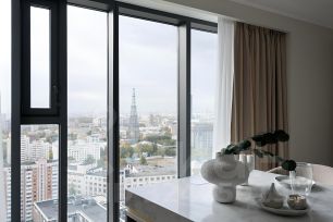 Завораживающий вид на набережную Москвы-реки, Дом Музыки, Swissotel Красные Холмы или во внутренний двор в пышной зелени