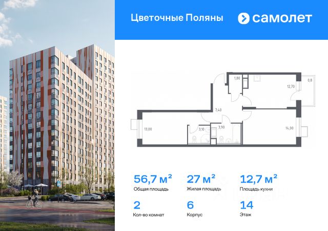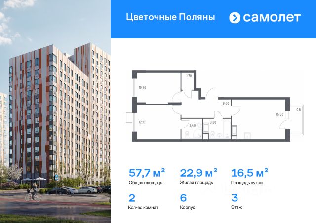 Строим кварталы для жизни с заботой о будущем. Предлагается 2-комнатная квартира комфорт-класса 57,7 кв.м в корпусе 6 на 3 этаже, в ЖК "Цветочные Поляны" Квартира с чистовой отделкой. Доступность дополнительных опций уточняйте у застройщика. Приобрести квартиру возможно по специальным акциям от застройщика, с текущими условиями акций можно ознакомиться в блоке "Акций". Цена динамическая и может отличаться, уточняйте актуальность у застройщика. "Цветочные Поляны" — жилой комплекс в Новой Москве, рядом с Валуевским и Ульяновским лесопарками. В квартале есть лесопарковая зона площадью 5 гектаров, где можно заниматься спортом, кататься на велосипеде и просто гулять среди деревьев. Также в пешей доступности — Валуевский лесопарк, дойти до которого можно вдоль "берега" декоративного сухого ручья. Те, кто любит отдых у воды, всегда могут прогуляться до реки Незнайки. В "Цветочных Полянах" предусмотрена образовательная инфраструктура для семей с детьми: уже построены первая школа и детский сад, в планах — строительство еще двух детских садов и второй школы. В квартале уже работают супермаркеты, кафе, салоны красоты, а в будущем появится свой торговый центр. Дома высотой до 22 этажей построены по монолитной технологии. Рисунок на фасадах отсылает к традиционному искусству Староселья — плетению кружев из стекляруса.