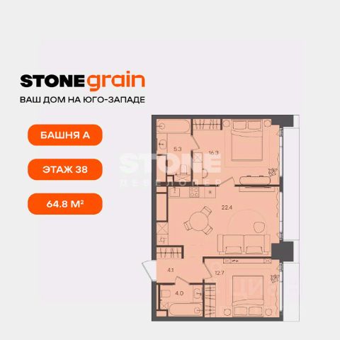 В продаже 1-спальная квартира с просторной кухней-гостиной и панорамным остеклением. Дополнительное преимущество - вид на закрытый благоустроенный двор жилого комплекса. Квартира с 1 спальней идеально подойдет для семейной пары или студента, а также станет отличным инвестиционным решением для тех, кто планирует сдавать жилье в аренду. Жилой комплекс бизнес+ класса STONE Grain находится на Юго-Западе Москвы в Обручевском районе. Расположение вблизи двух станций метро и ключевых транспортных магистралей обеспечивает быстрый доступ к центру столицы и соседним районам: - 2 мин. до м. "Калужская" и "Воронцовская" - Удобный выезд на ул. Обручева и ул. Профсоюзную - 2,5 км до Ленинского проспекта - 6 км до ТТК и МКАД - 10 км до Садового кольца и Рублёвского шоссе - 30 мин. на автомобиле до "Москва-Сити", Лужников и МГУ Проект расположен в районе с развитой образовательной и социальной базой. Рядом с жилым комплексом находятся ведущие вузы Москвы, лучшие детские сады и школы. Среди других особенностей - зеленое окружение, близость к Воронцовскому парку. Проект отличает выверенная архитектура от Kleinewelt Architekten. Башня А высотой в 45 этажей станет архитектурной доминантой с выразительными поясами балконов галерейного типа и эксклюзивными лотами со вторым светом. Камерная 20-этажная башня Б со скатной крышей будет включать двухуровневые квартиры с террасами. На закрытой благоустроенной территории разместятся игровые площадки для детей разных возрастов, workout-зона, павильоны для работы на открытом воздухе. Жители также смогут воспользоваться дополнительными зонами отдыха и инфраструктурой на территории, прилегающей к офисному кварталу класса А STONE Калужская. Комфортный микроклимат в квартирах обеспечивают современные инженерные решения. Для удобства жителей предусмотрен двухуровневый подземный паркинг на 270 машиномест. STONE - девелопер коммерческой и жилой недвижимости классов бизнес и премиум в Москве с 19-летним опытом. Сегодня занимает лидирующую позицию на офисном рынке (рейтинг РБК). В портфеле девелопера представлено 3 млн кв. м построенных, строящихся и проектируемых объектов, из которых более 1 млн кв. м находятся в стадии строительства. Компания имеет самый масштабный проектный портфель офисной недвижимости класса А на московском рынке (данные NF Group) и возглавляет топ устойчивых девелоперов, согласно исследованию FResearch - Forbes. В настоящий момент девелопером представлено 16 бизнес-центров класса А, а также 3 жилых комплекса бизнес+ класса. ID.31005