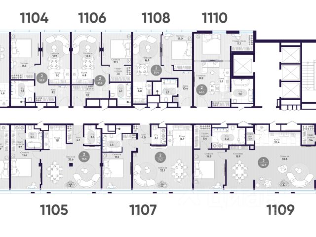 Продается квартира 1105, по адресу улица Новый Арбат, 2, корпус Cosmos Selection Arbat Apartments в Cosmos Selection Arbat Apartments на 11 этаже, с площадью 73.5 м2.