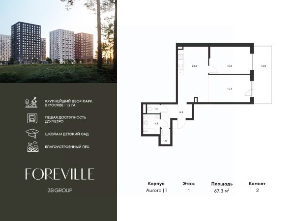 Предчистовая отделка в подарок! Пешая доступность от метро и московская прописка! Продается уютная 3-комн. квартира площадью 71,9 кв.м на 2 этаже 17 этажного жилого комплекса бизнес-класса Foreville от 3S Group. Общая площадь: 71,9 кв.м., жилая: 35,4 кв.м., площадь кухни-гостиной: 15,7 кв.м., высота потолков: 2,72 м., окна выходят во двор и на улицу. Квартира предлагается без отделки, что идеально подходит для воплощения собственного дизайнерского решения. Также доступна опция предчистовой отделки, стоимость которой включается в общую цену квартиры. О проекте: Пространство Комплекс располагает крупнейшим приватным двор-парком в Новой Москве площадью 1,2 Га, предлагая жителям огромное пространство для отдыха, спорта и игр на свежем воздухе. Природный ландшафт Внутренний лесопарк с более чем 183 взрослыми деревьями и 10 320 цветущими кустарниками создает уникальную природную атмосферу для каждого времени года. Игровые и спортивные зоны Обширные площадки с безопасным покрытием, специализированные зоны для детей разных возрастных групп и взрослых, включая воркаут и настольный теннис, способствуют активному и здоровому образу жизни. Экологичность и долговечность Использование натуральных материалов, таких как лиственница, и крупноформатной бетонной плитки для покрытия, подчеркивает стремление проекта к экологичности и устойчивости. Безопасность и уединение Внутренний двор без машин обеспечивает безопасность для детей и спокойствие для взрослых. Территория огорожена и находится под круглосуточным видеонаблюдением. Сохранение времени Благодаря превосходной транспортной доступности и близости к новой станции метро Корниловская, Foreville позволяет жителям экономить время для семьи и отдыха на природе, минимизируя необходимость длительных поездок. Foreville не просто жилье, а целая экосистема для комфортной и гармоничной жизни на свежем воздухе, совмещая преимущества городской инфраструктуры и непосредственную близость к природе.