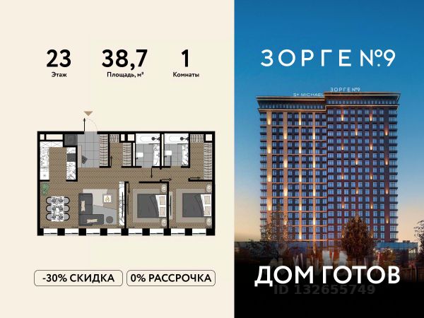"Зорге 9" — готовые апартаменты бизнес-класса на Ходынке. 10 минут до Москва-Сити. Архитектура: 3 современных корпуса с фасадами в стиле архитектуры Нью-Йорка и с сервисами премиальных отелей, высотой до 23 этажа. Строгие линии, панорамные окна создают ощущение неподдельной роскоши и комфортной жизни в сердце мегаполиса. Проект награжден авторитетной премией European Property Awards. Резиденции: Свободная планировка, небольшая глубина этажа, огромные панорамные окна в пол до 3,6 м и высота потолков до от 3,3 до 4,3 м позволяют реализовать самые смелые концептуальные идеи и создать идеальный интерьер с учетом всех пожеланий. Вдохновляющие виды на город украсят ваш апартамент лучше любой картины. Есть возможность приобретения дизайн-проекта и полной меблировки апартаментов от партнеров девелопера. Расположение: 3 мин. пешком до парка Березовая роща 10 мин. пешком до Ходынского поля 10 мин. до ТЦ Авиапарк 30 минут до Шереметьево 10 мин до Москва-Сити или 1 станция до Москва-Сити 5 минут до ТТК 4 станции метро в шаговой доступности: 6 мин м. Полежаевская (фиолетовая ветка) 7 мин МЦК Зорге (МЦК) 7 мин м. Хорошевская (голубая ветка) 10 мин МЦК Хорошёво (МЦК) Благоустройство: Собственный парк 2 га с амфитеатром и поющими фонтанами. В парке высажено 136 деревьев и более 11 000 кустов и мелких растений из немецких питомников. Площадка для йоги и воркаут-зона со спортивными площадками. Теннисные столы и детский плейхаб Две башни Авторское гранд-лобби В лобби предусмотрена лаундж-зона, чайная с камином, комната для хранения велосипедов и колясок. Доступ по системе FACE ID. В отделке лобби и лифтовых холлов использован декоративный камень итальянского бренда Atlas Concorde Пентхаусы На верхнем уровне комплекса расположены роскошные просторные пентхаусы с высотой потолка до 4,2 метра и панорамными окнами до 3,6 метров, открывающими великолепные виды на столицу. Пентхаусы с выходами на собственные приватные террасы на кровле, площадью от 150 кв. м являются жильем high-уровня, демонстрирующим высокий статус владельца. Купить квартиру - элитное жильё на улице Зорге в Москве.